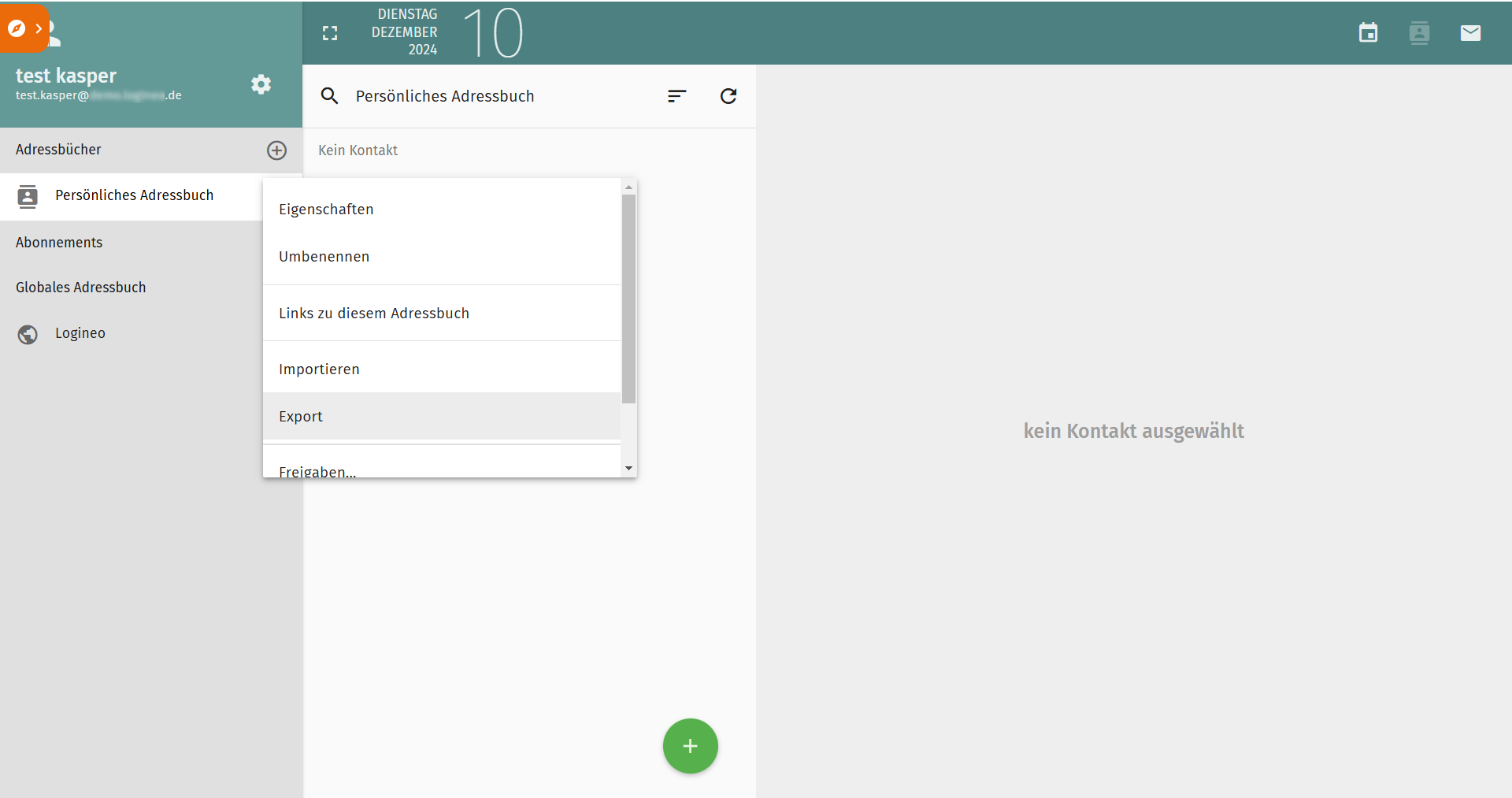 Das zu exportierende Adressbuch wird angewählt. Mit Klick auf das Dreipunktemenü wird "Export..." gewählt.